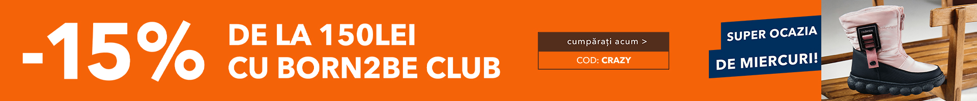 cu cod: CRAZY Preț cu Born2be Club pentru min. 150 Lei