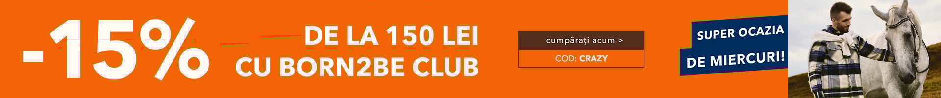 cu cod: CRAZY Preț cu Born2be Club pentru min. 150 Lei